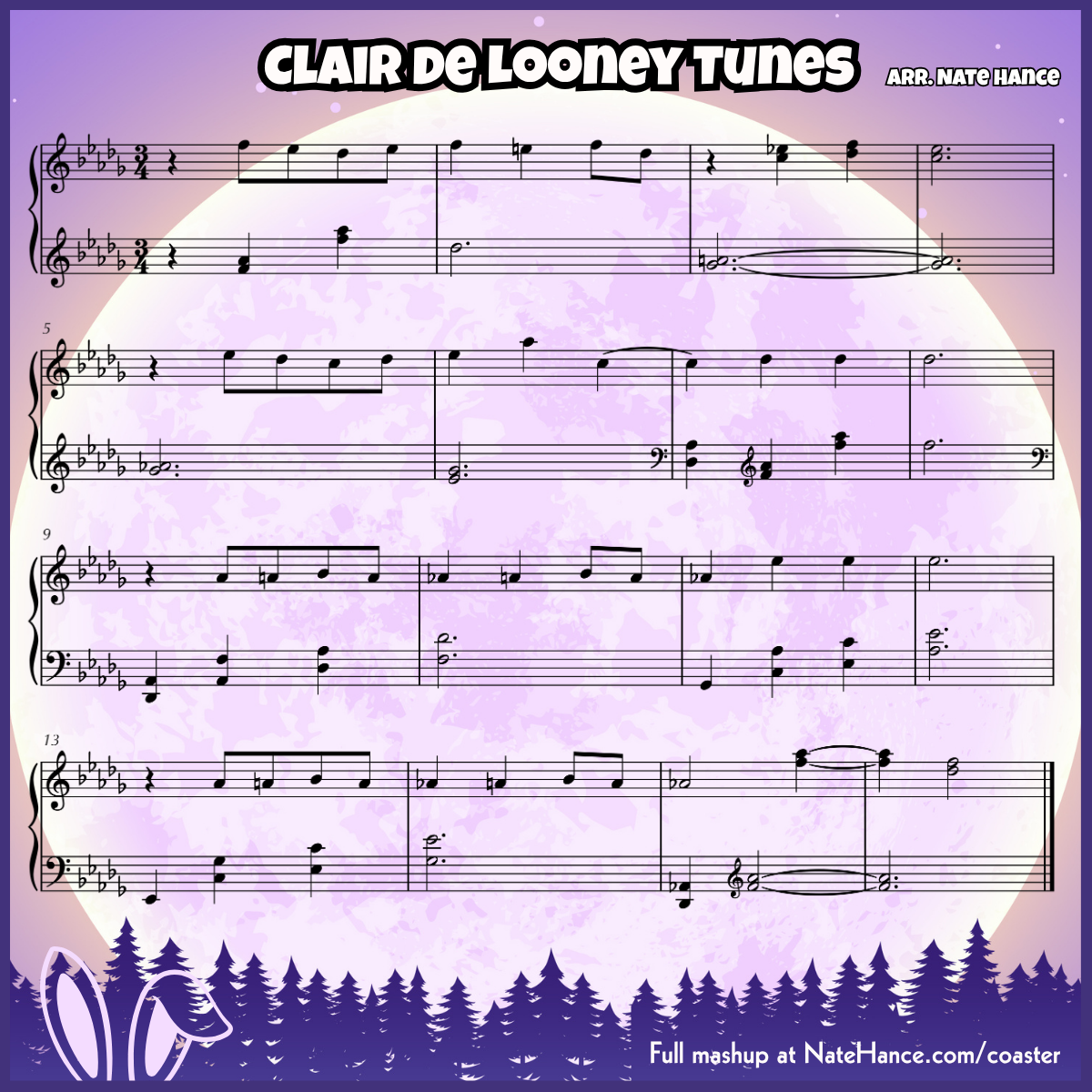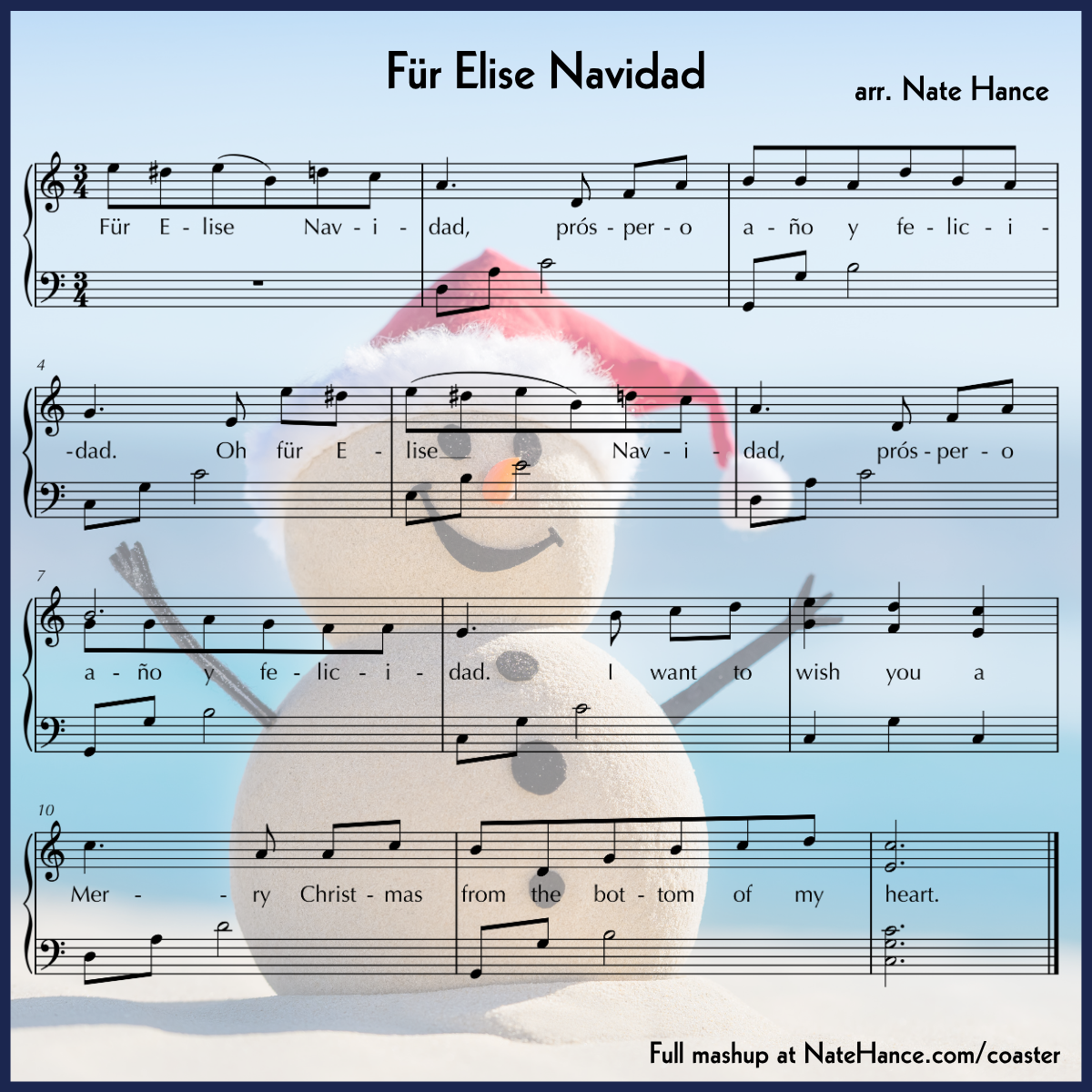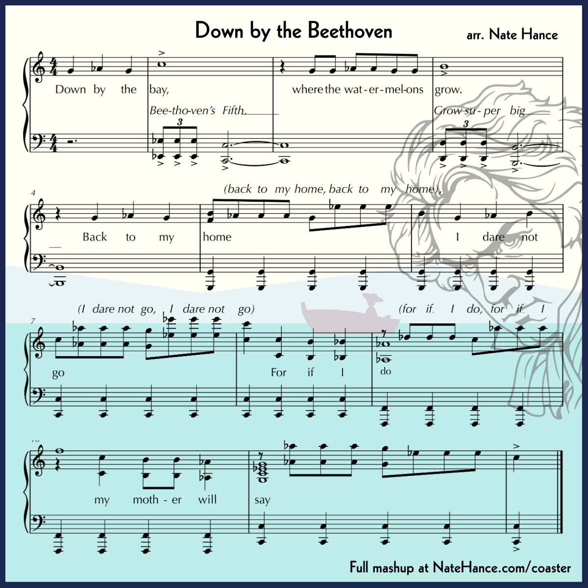 8 total sheet music mashups on 4 durable double-sided coasters!