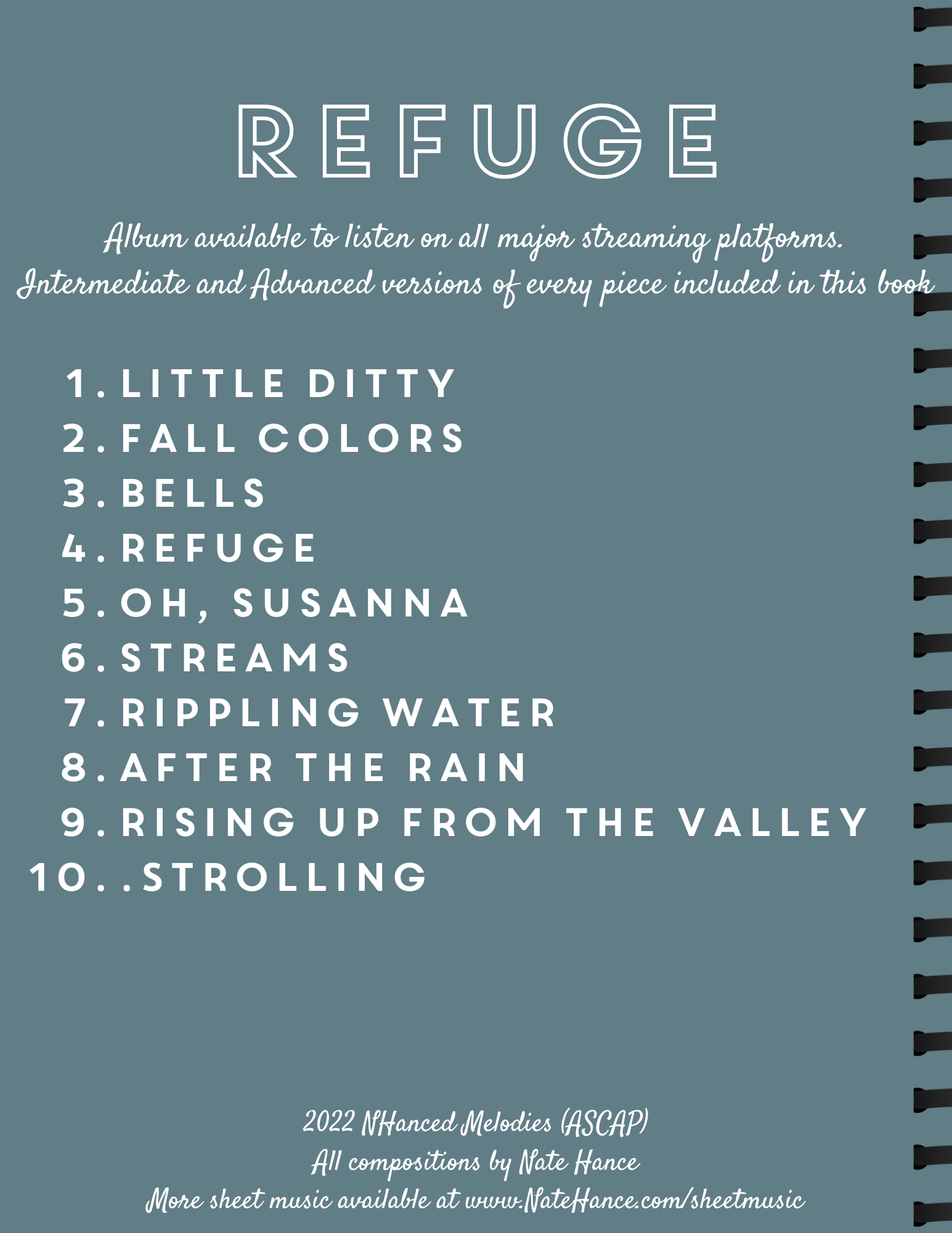 Refuge – Spiral-Bound Piano Sheet Music Book (Intermediate & Advanced Versions)