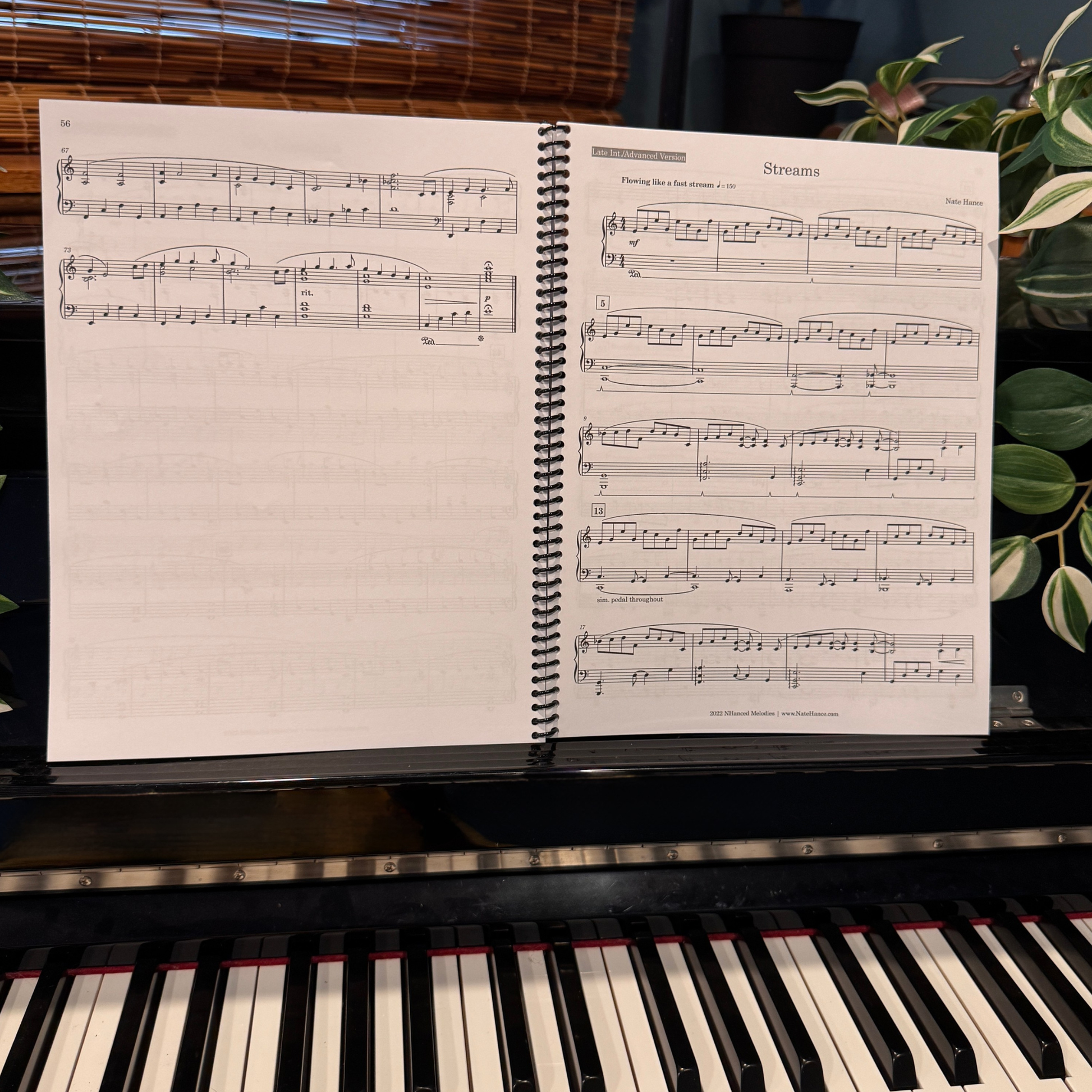 Across these pages you’ll find pieces inspired by falling autumn leaves, peaceful rivers, quiet moments at home, childhood songs reimagined, and the joy that comes after a cleansing rain. Nate wrote many of these pieces while traveling, performing, or reflecting on life with family, and each composition carries the warmth and sincerity of those memories.