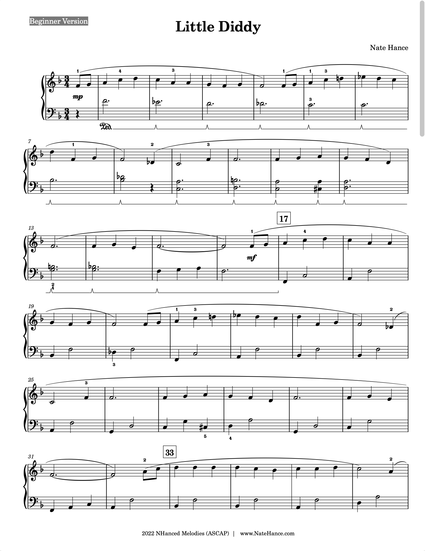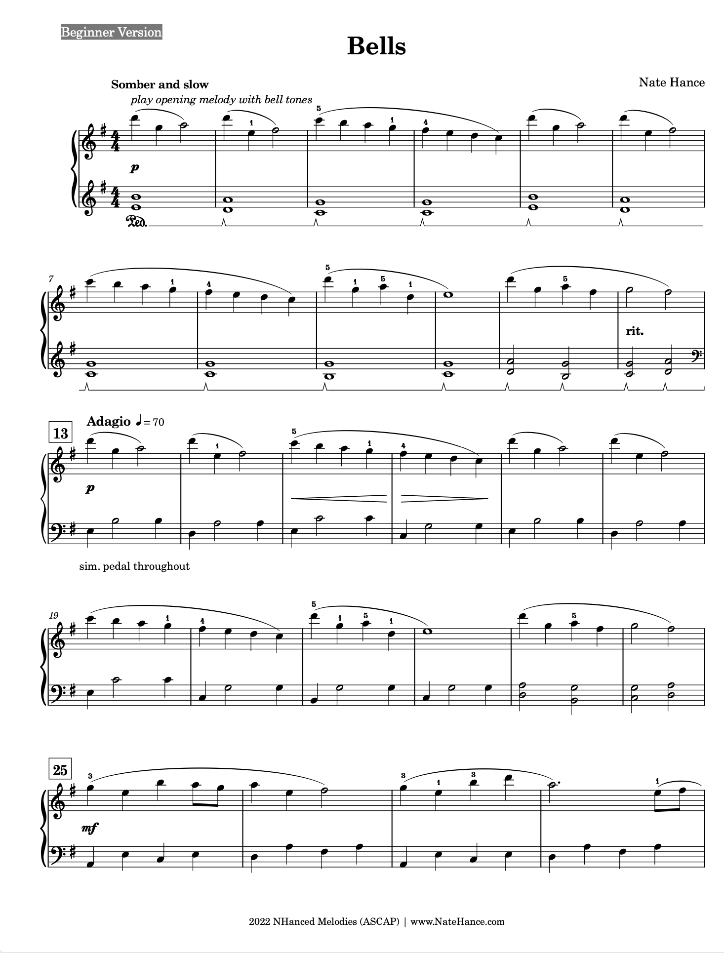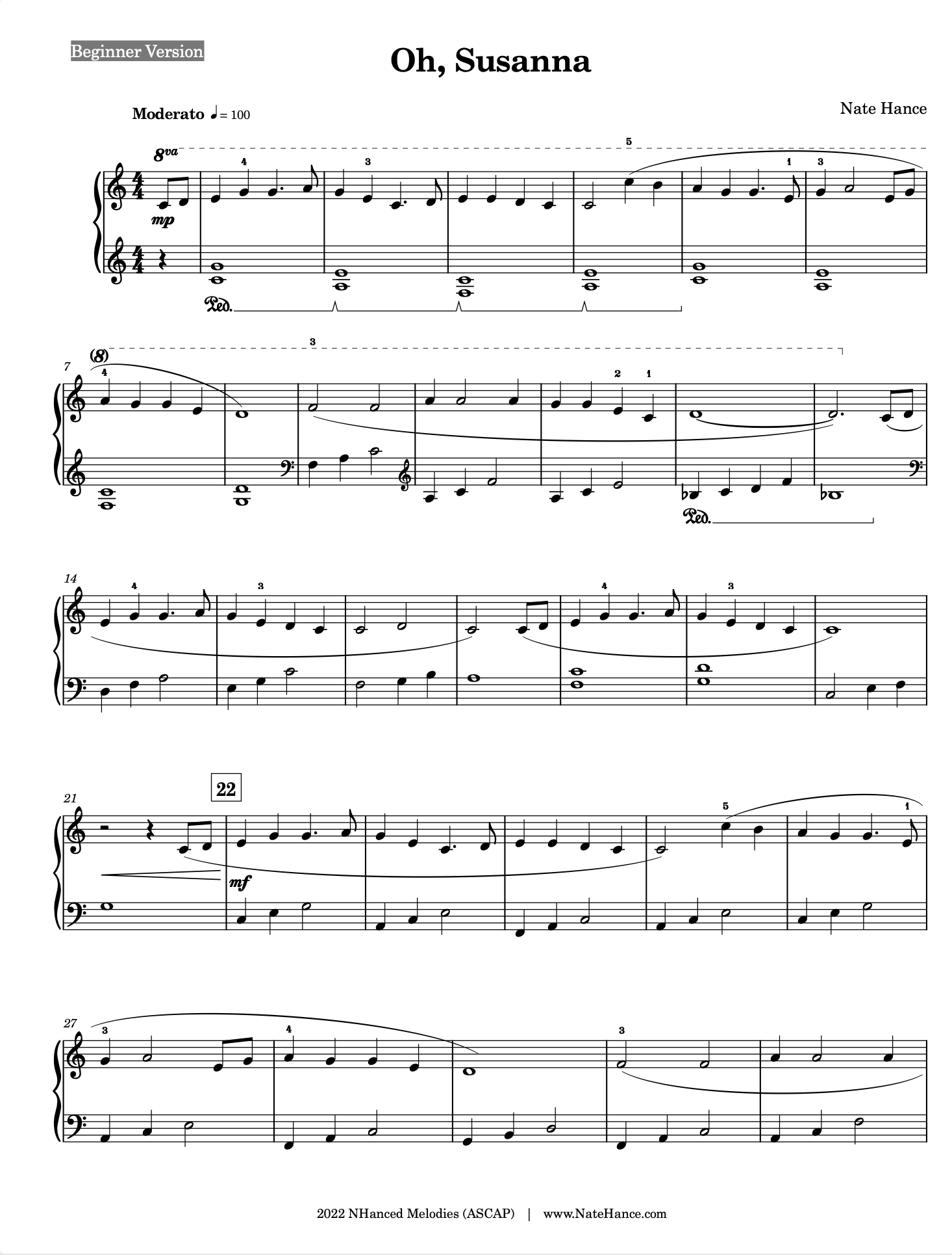 Receive a PDF download immediately with beginner arrangements of these 8 songs.