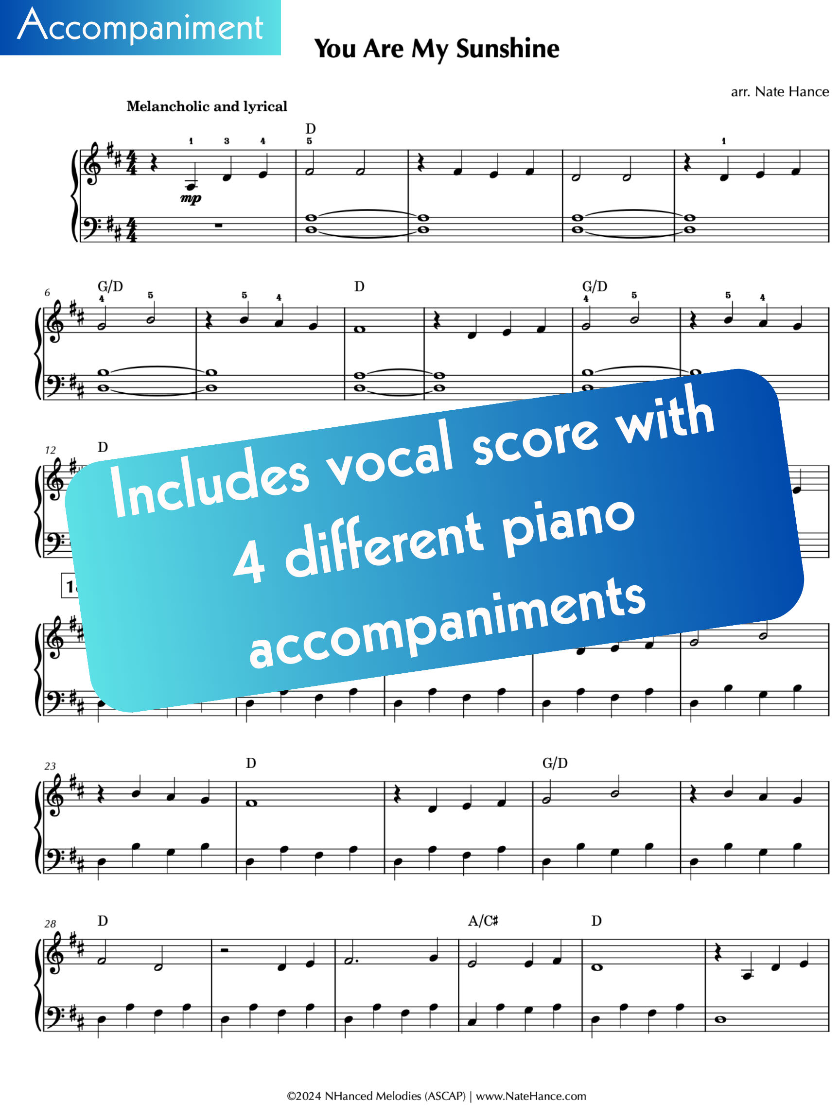 Available in Easy, Intermediate, and Advanced arrangements. Plus receive a vocal score with 4 different piano accompaniments for free!