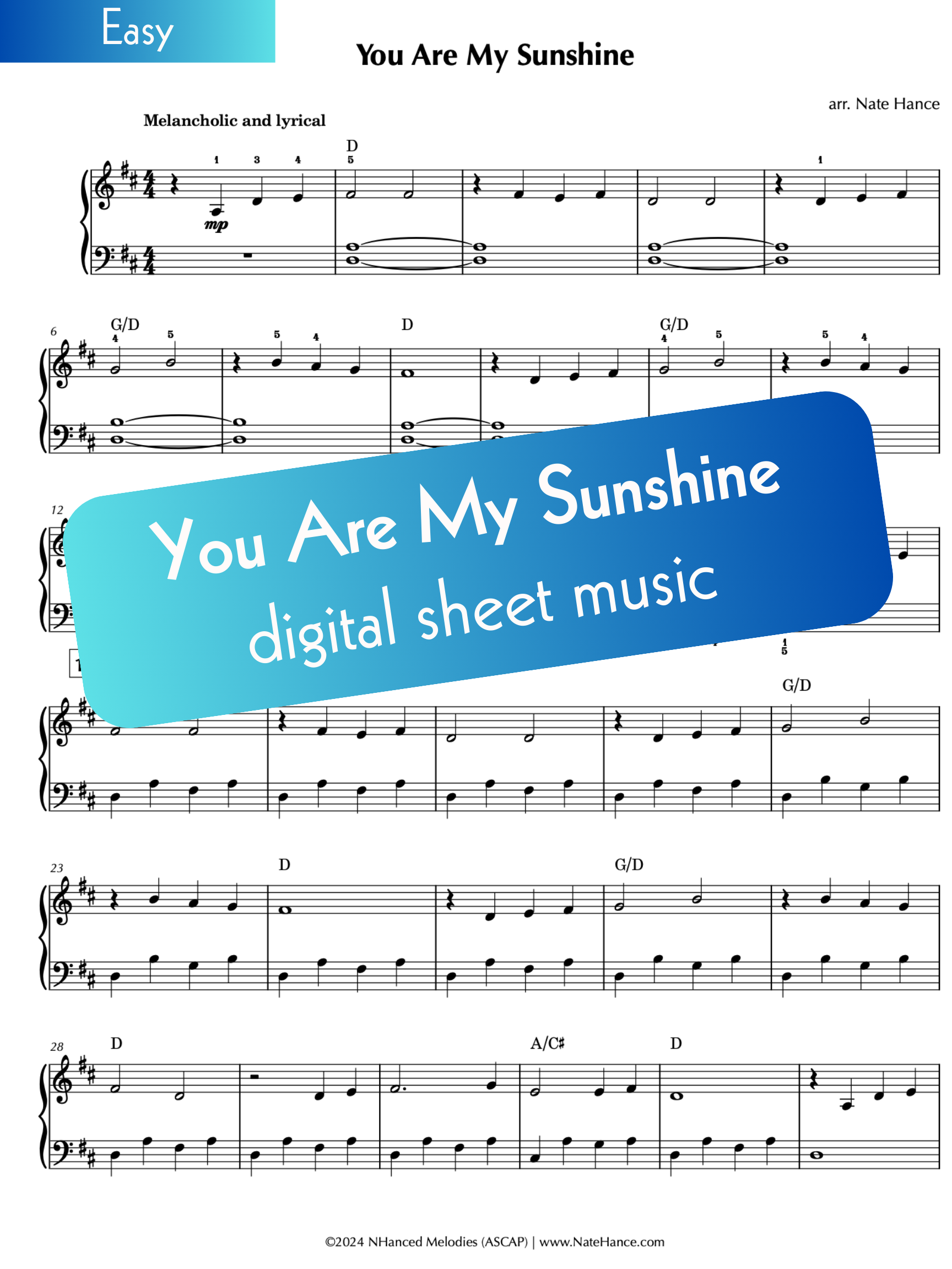 A lovely request from one of my customers for a relaxing piano arrangement of the iconic and beautiful tune You Are My Sunshine.